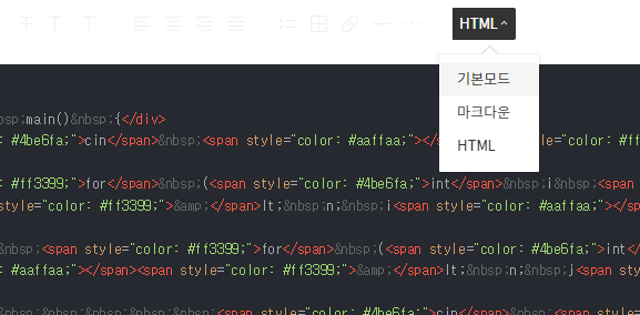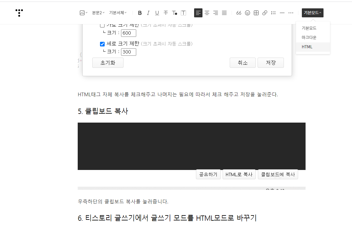6. 티스토리 글쓰기에서 글쓰기 모드를 HTML모드로 바꾸기
