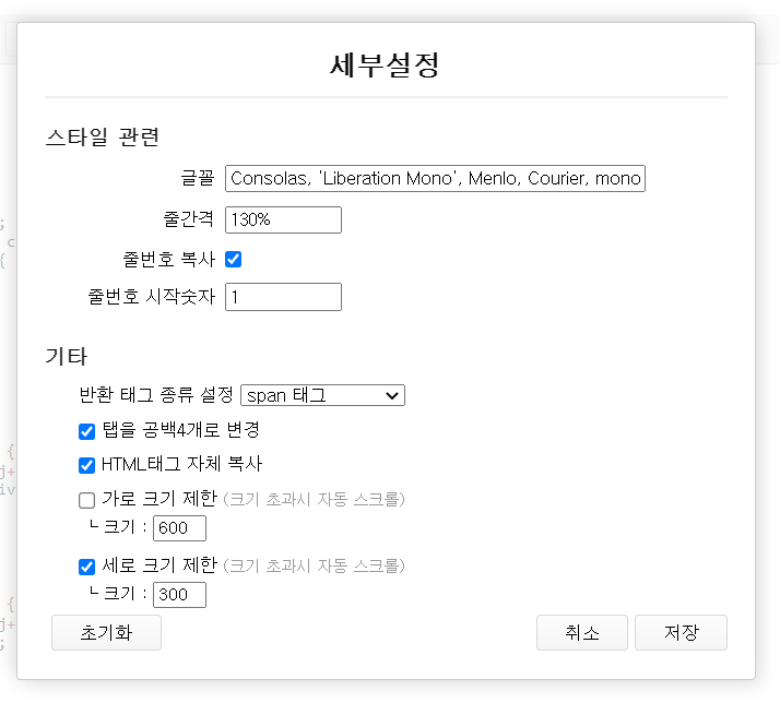 HTML 태그 자체 복사를 체크해주고 나머지는 필요에 따라서 체크해주고 저장을 눌러준다.