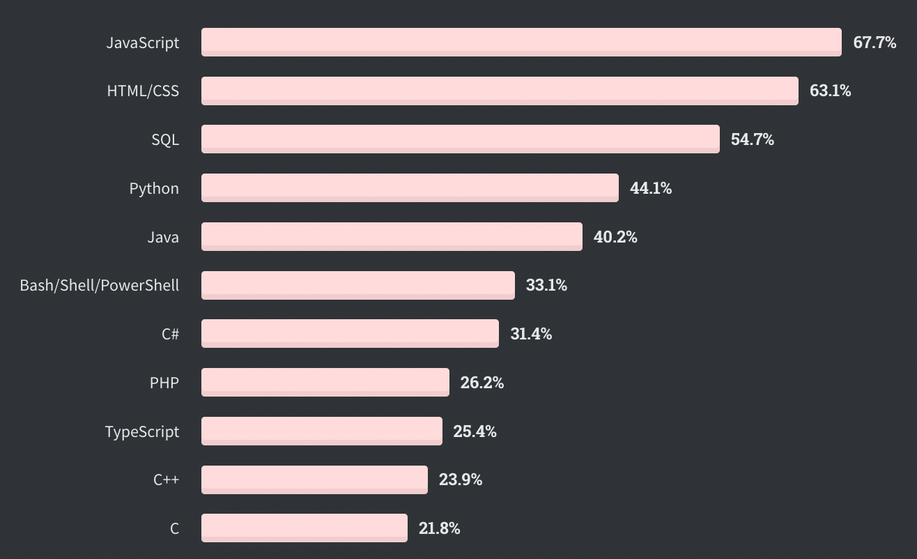 1. 굉장히 많은 사랑을 받는 언어 (그래프 출처 : 스택오버플로어)